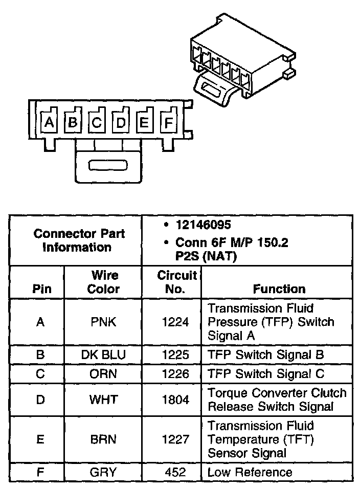 Automatic Transmission Fluid Pressure Switch Connector, Wiring Harness Side: