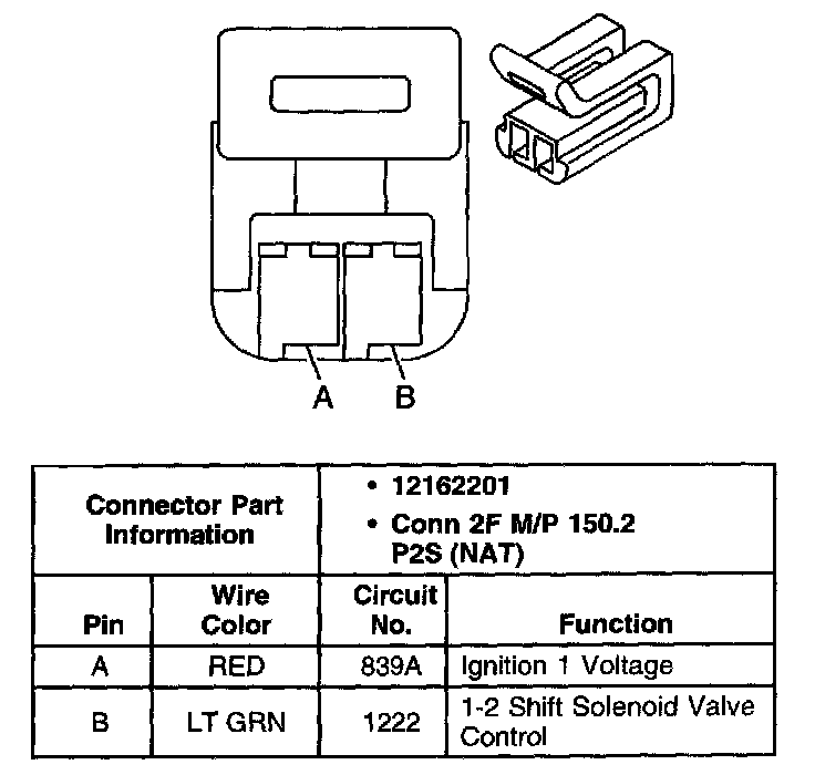 1-2 Shift Solenoid (SS) Valve Connector, Wiring Harness Side: