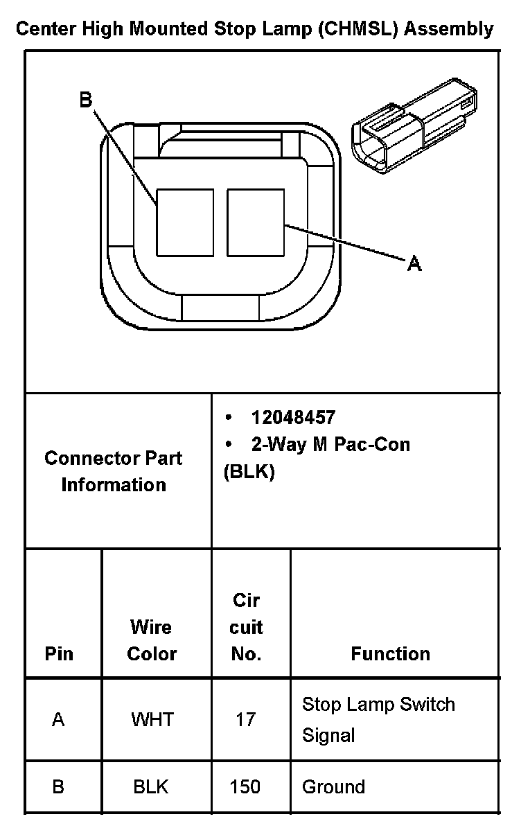Center High Mounted Stop Lamp (CHMSL) Assembly:
