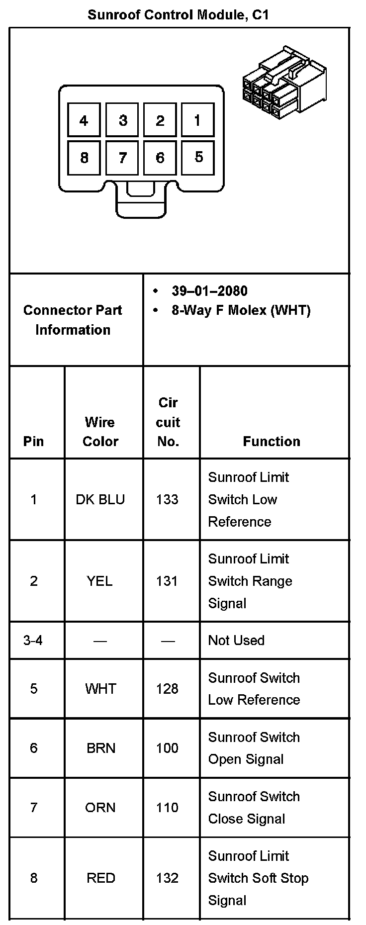 Sunroof Control Module, C1: