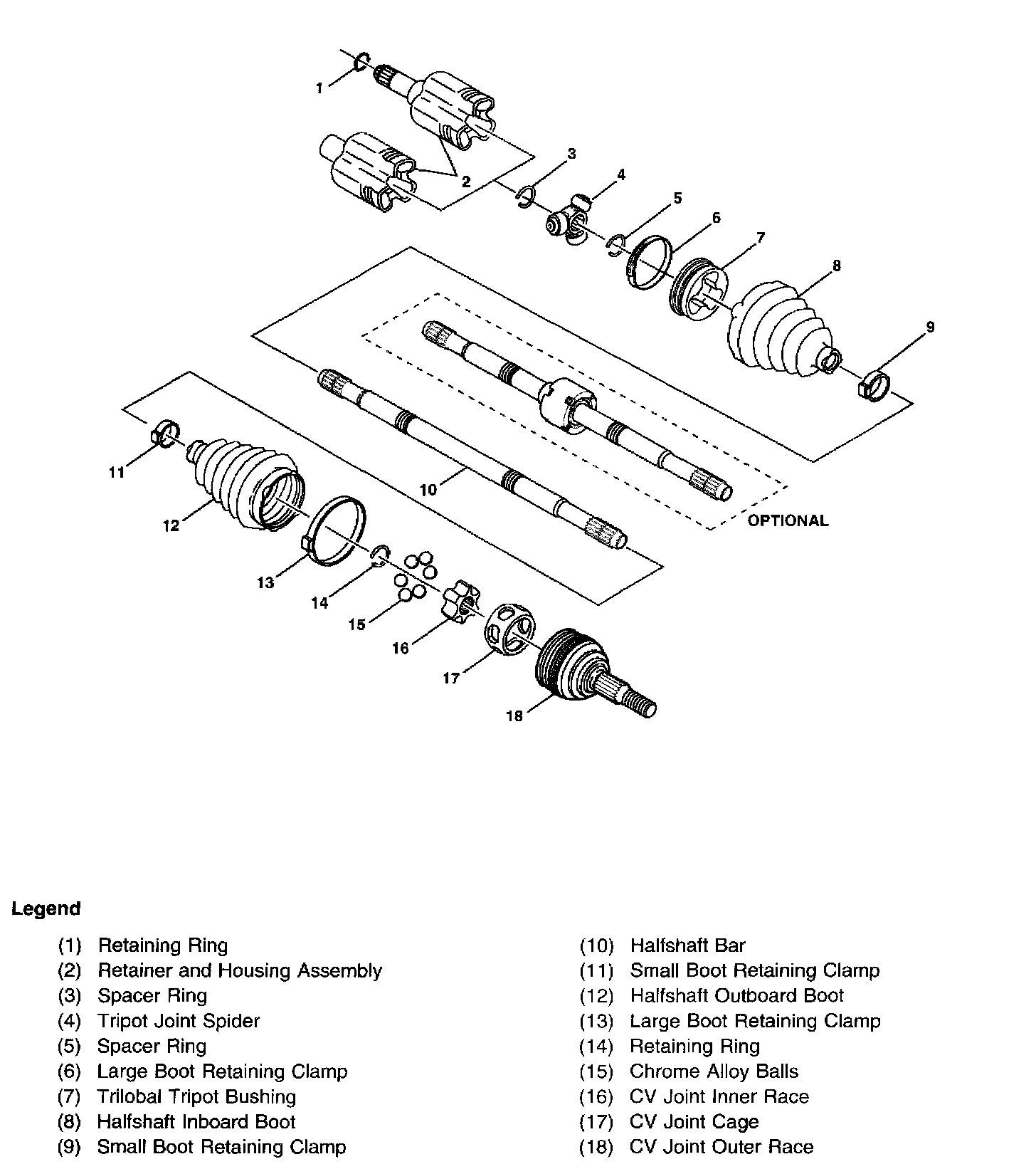 Wheel Drive Shafts Disassembled Views (Halfshaft Assembly)