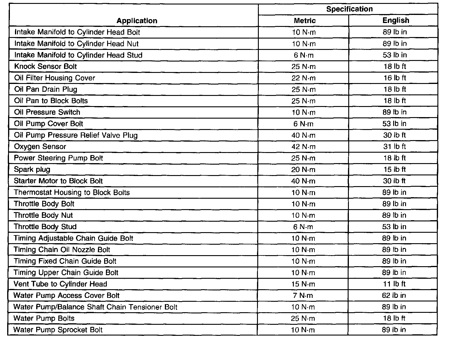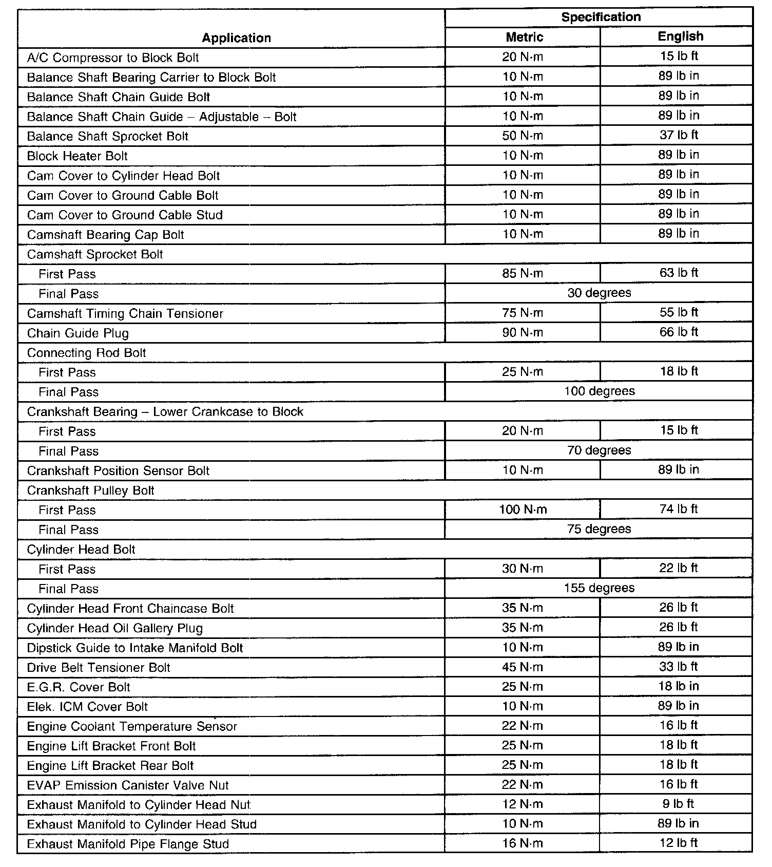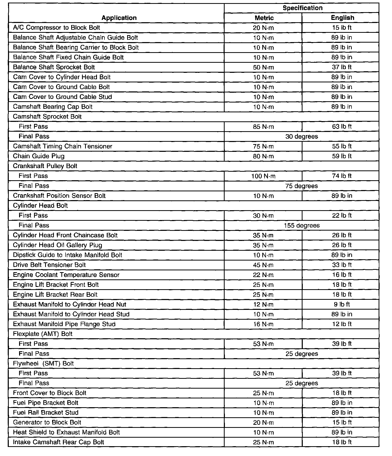 Fastener Tightening SpecificationsGeneral