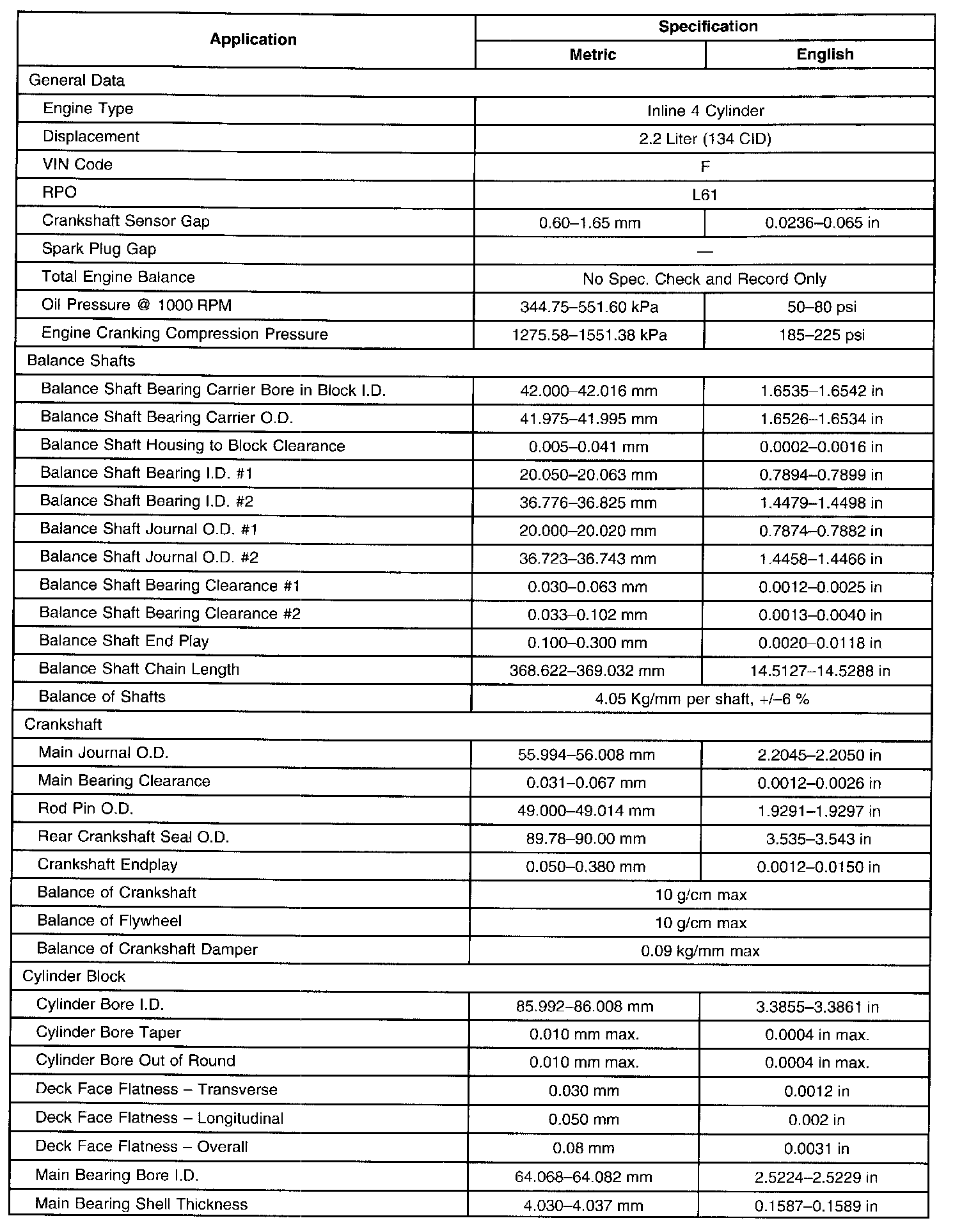 Cylinder Block Assembly: Specifications