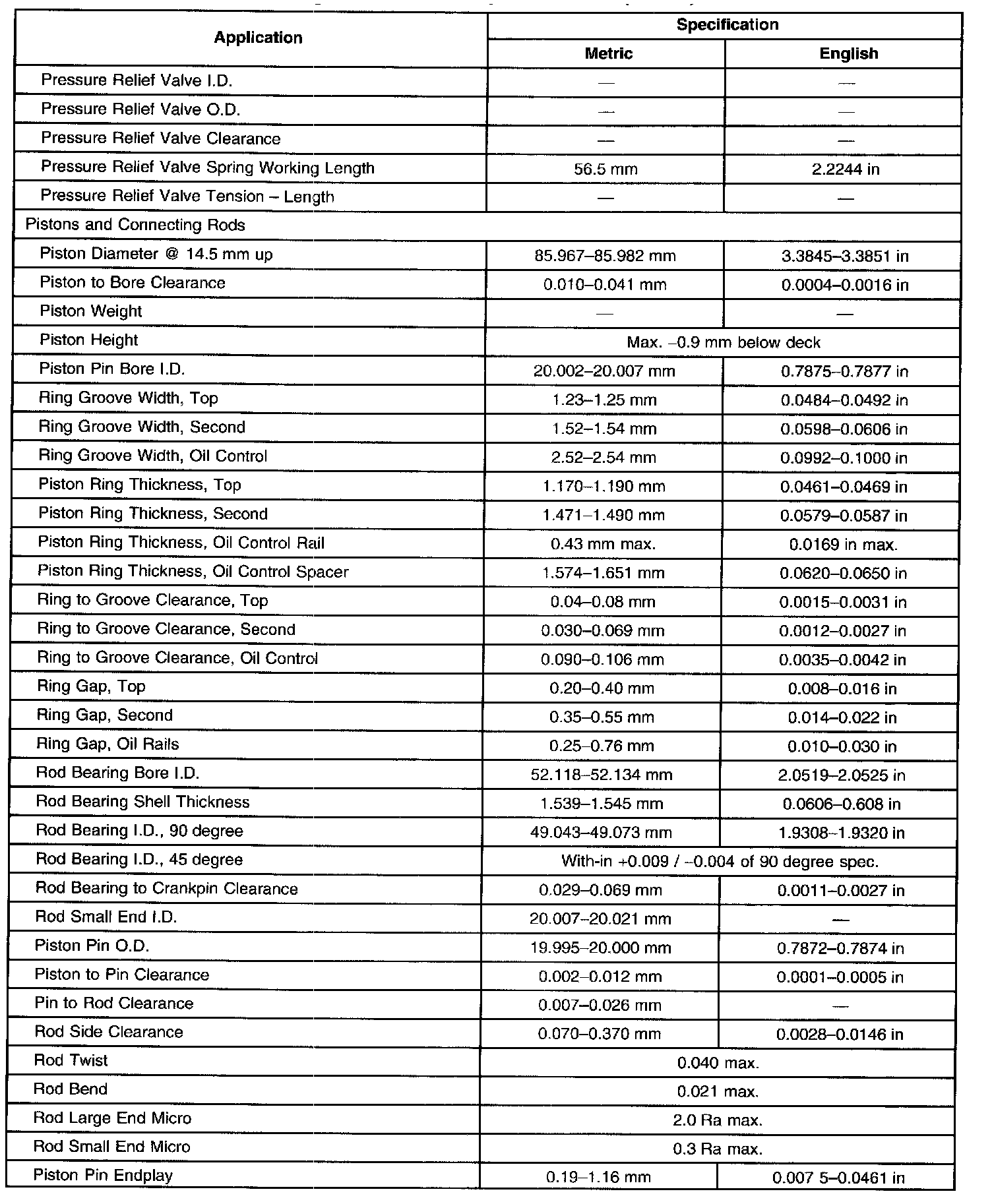 Engine Mechanical Specifications