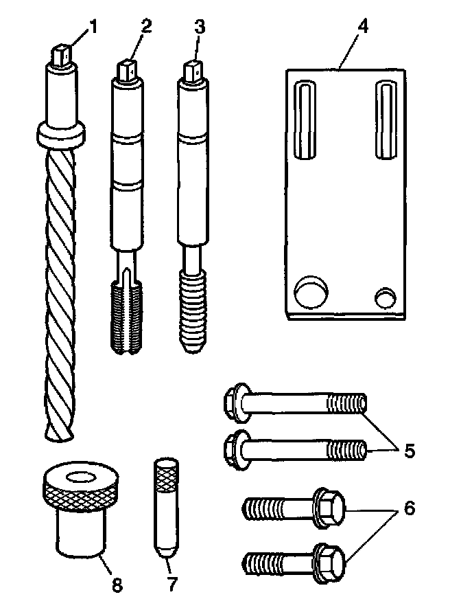 Main Cap Bolt Hole Thread Repair1. The main cap bolt hole thread repair kit consists of the following items: