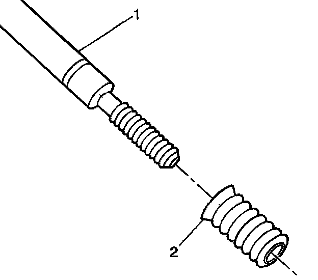 13. Apply threadlock Loctite- 277, J 42385-109 (1), or equivalent to the insert OD threads (2).
