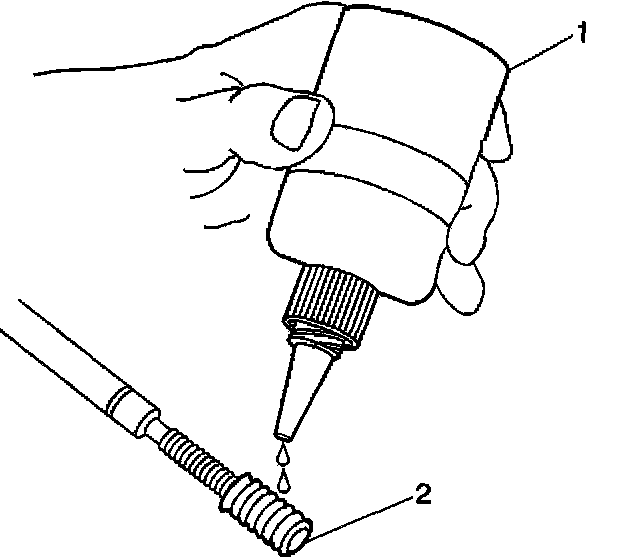 11. Lubricate the threads of the installer tool (2) with the driver oil (1).