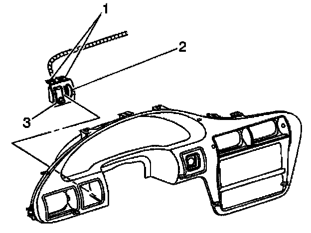 3. Remove the fog lamp/dimmer switch (3) housing from the instrument panel accessory trim plate.