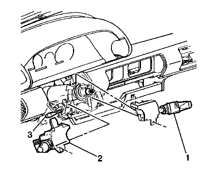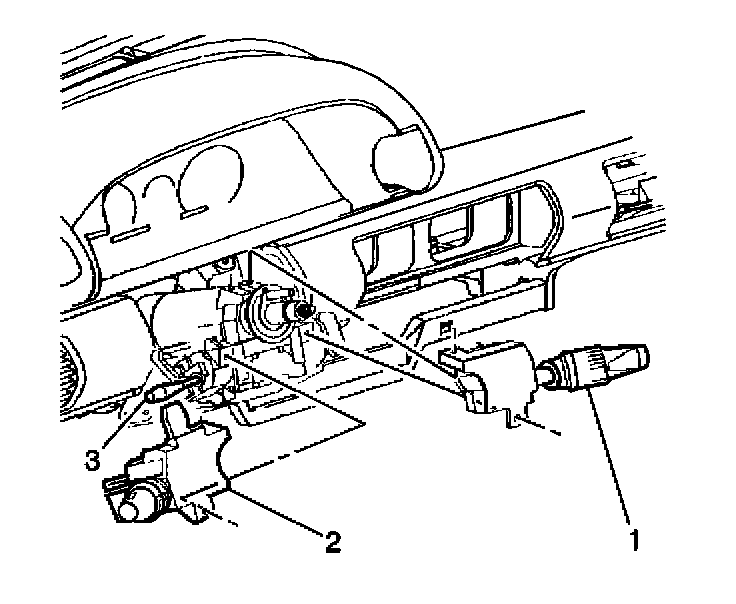 2. Install the multifunction switch (2) to the steering column while depressing the spring loaded horn pin.