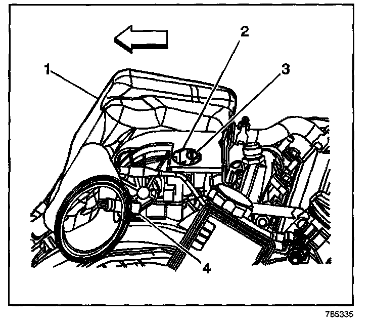 3. While twisting the IAT sensor (4), pull the sensor from the air cleaner resonator (1).