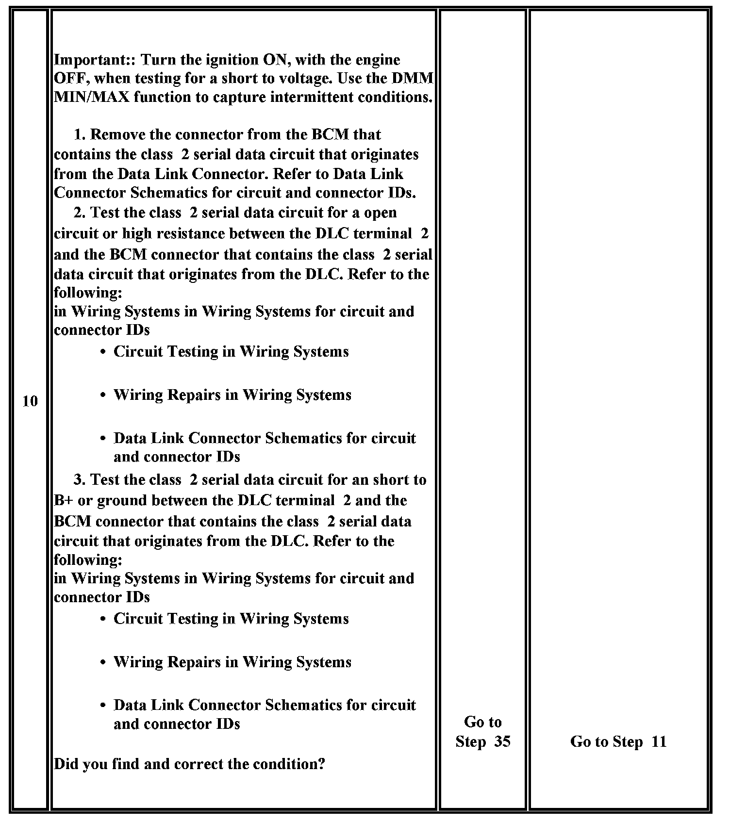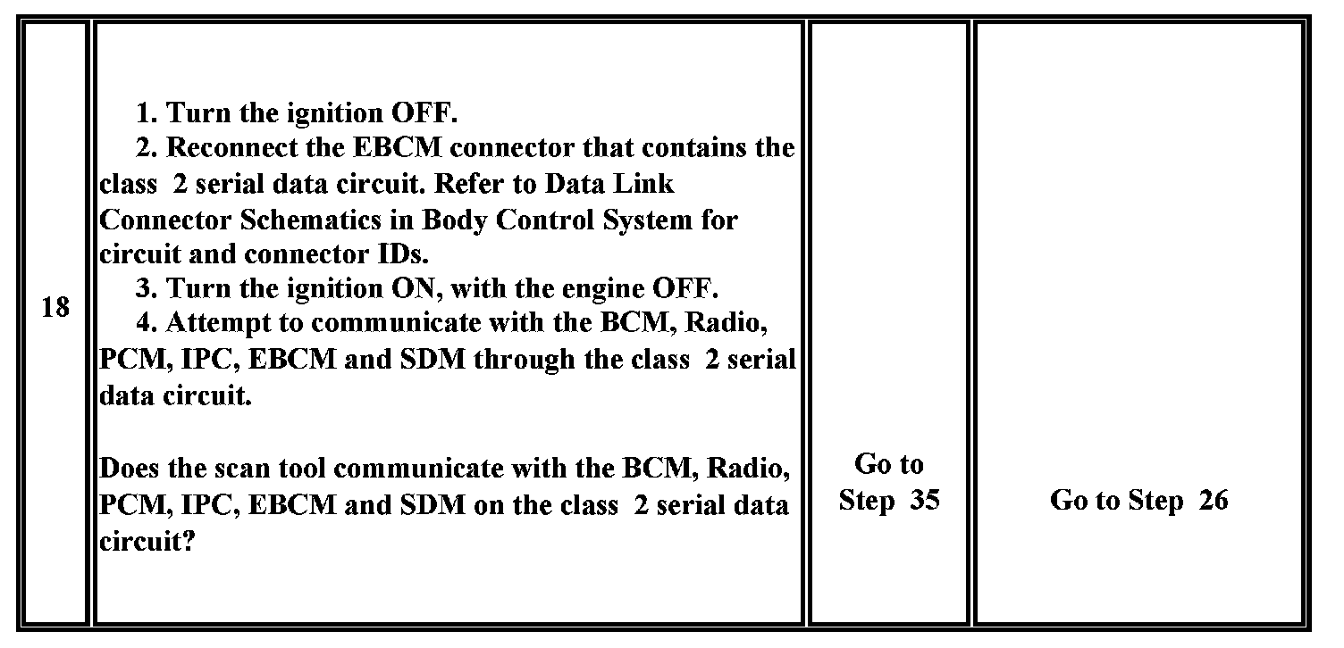 19. This test analyzes the condition of the wiring and connectors in the class 2 serial data circuit of the BCM.
