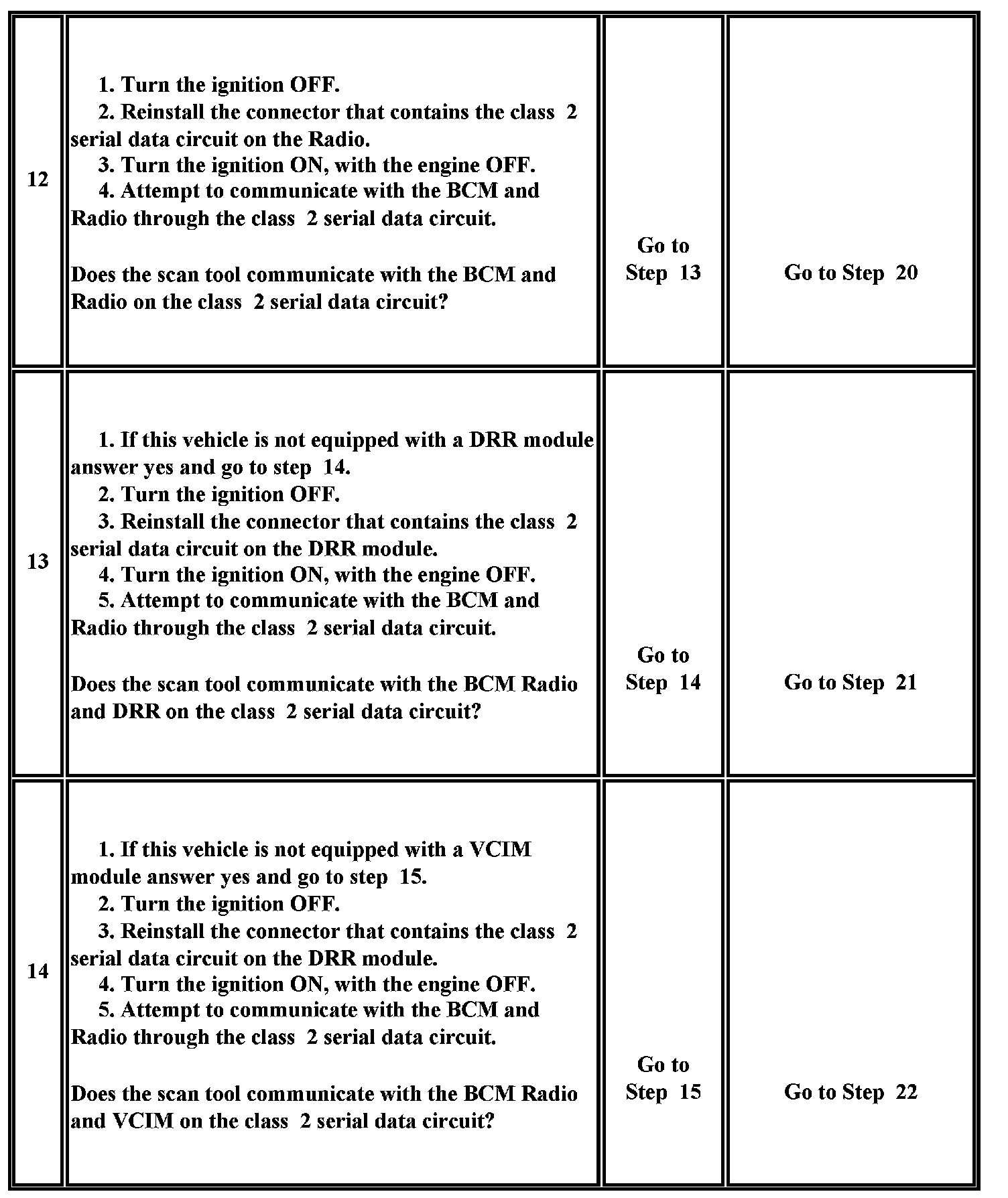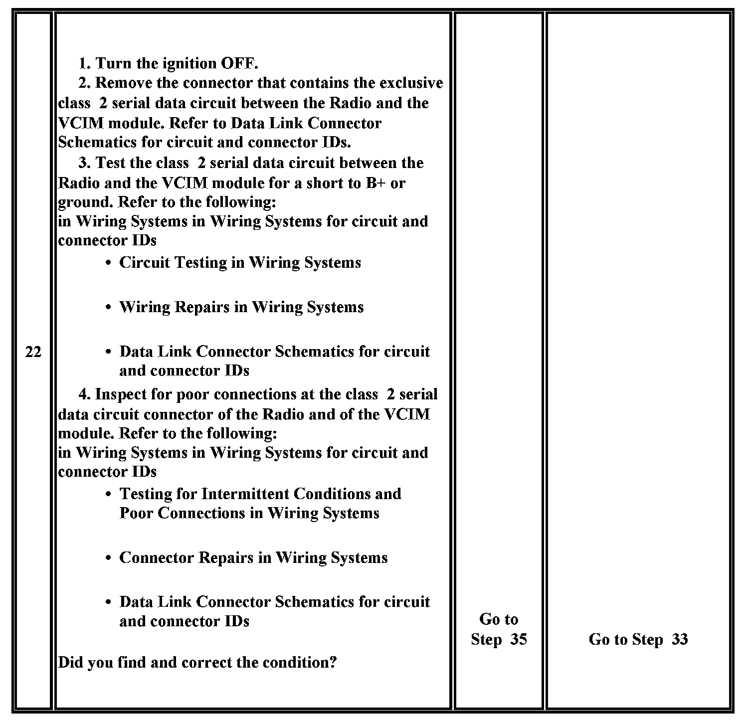 22. This test analyzes the condition of the wiring and connectors in the class 2 serial data circuit between the Radio and the VCIM module.