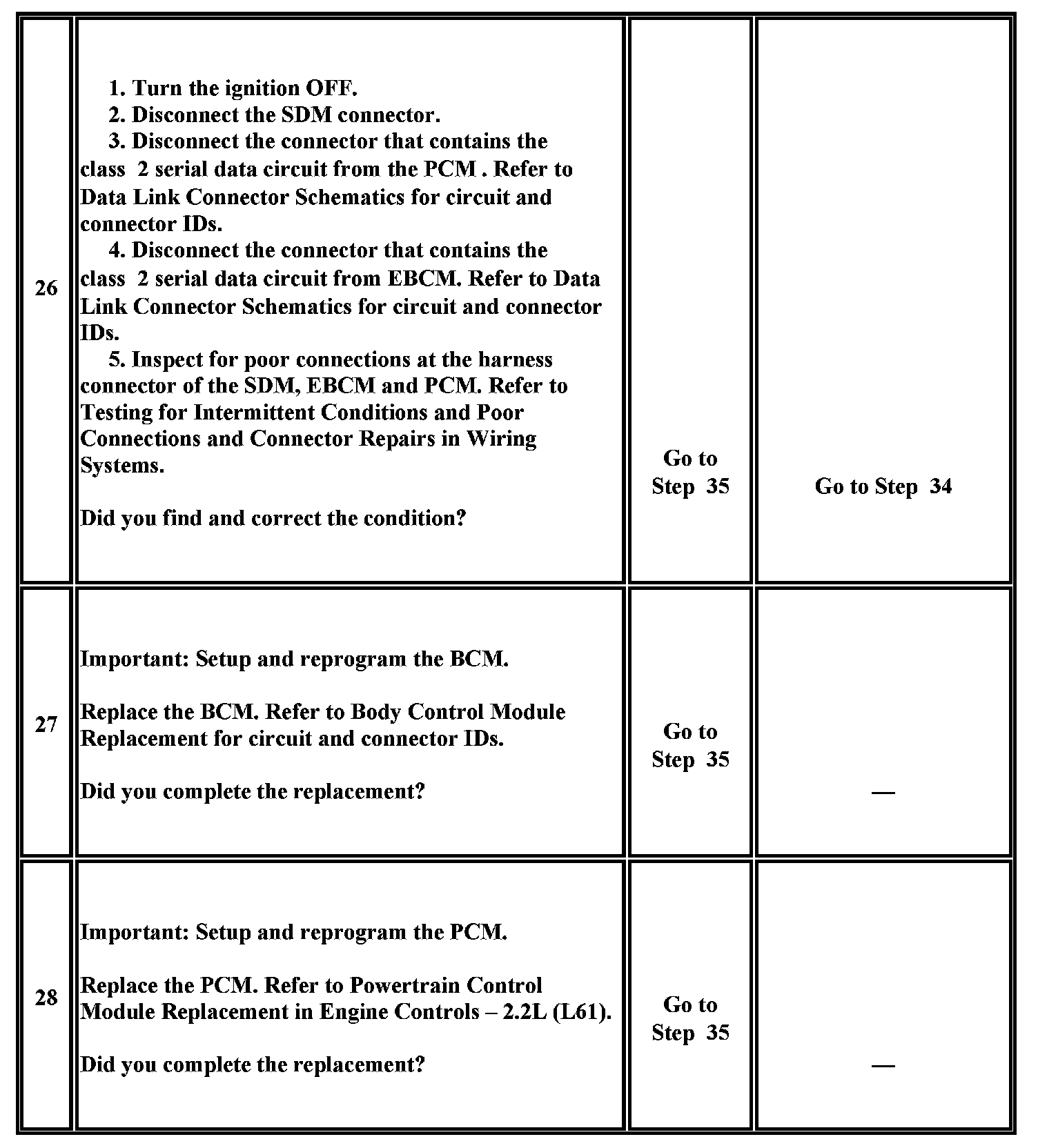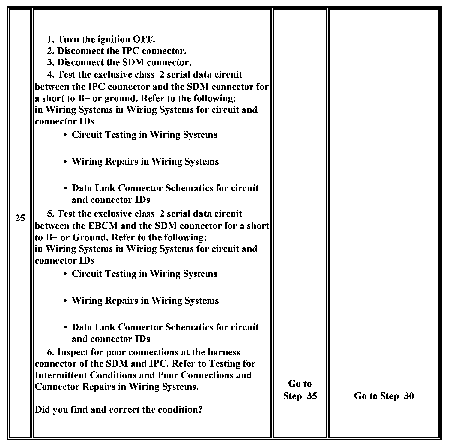 25. This test analyzes the condition of the wiring and connectors in the class 2 serial data circuit of the SDM.