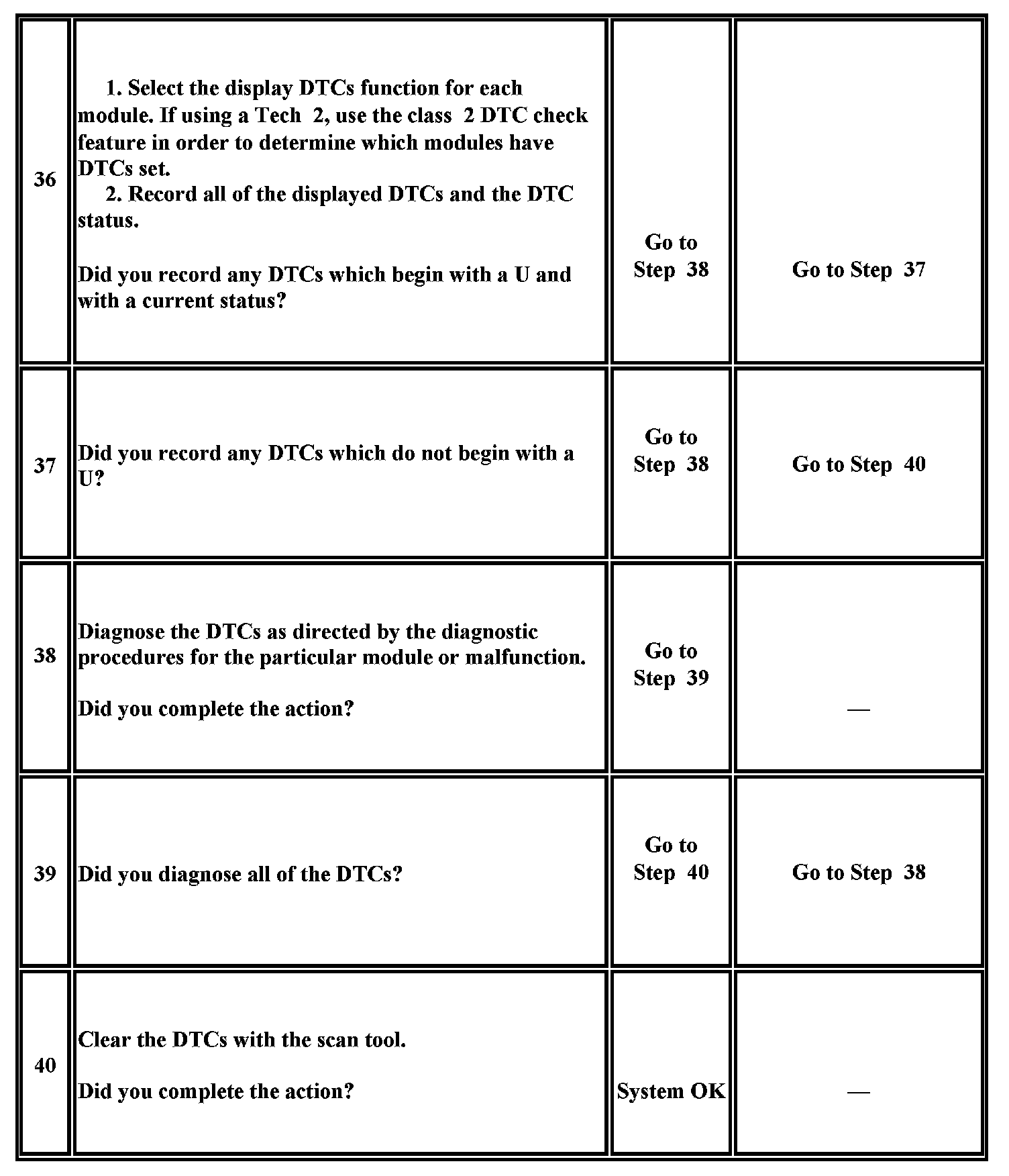 36. If there are no current DTCs that begin with a U, the communication malfunction has been repaired.