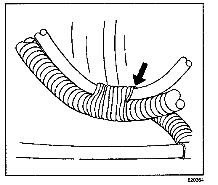 3. Cut the tape holding the two cables together at the retainer on the battery tray.