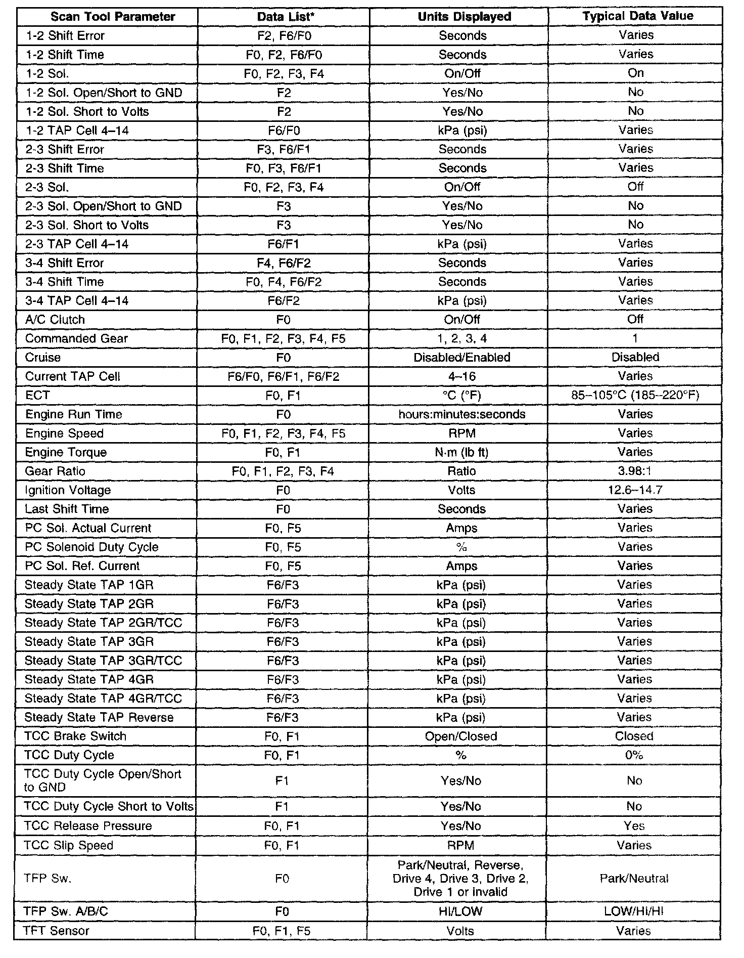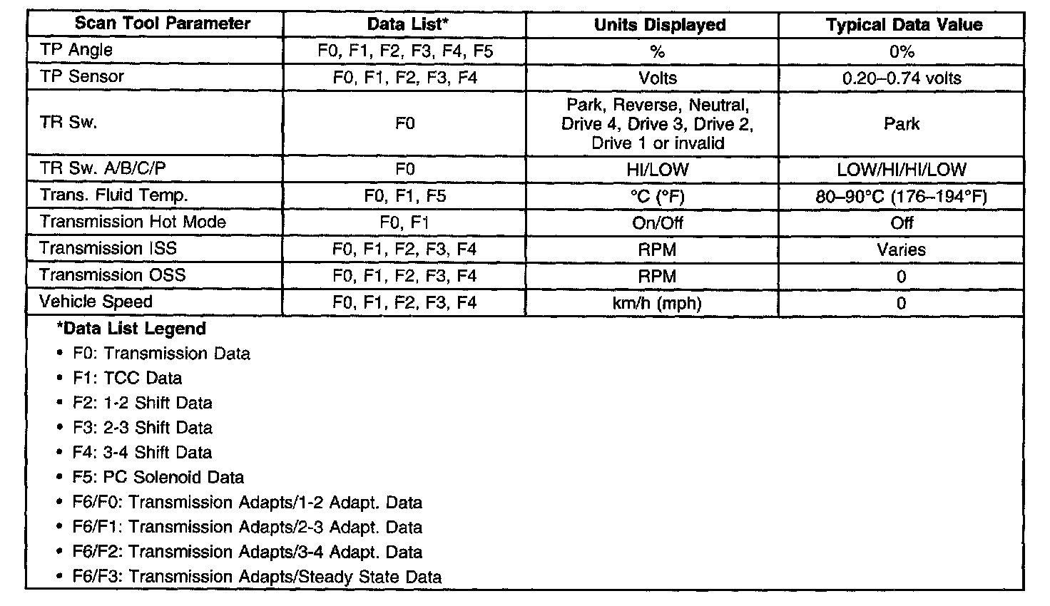 Transmission Scan Tool Data List