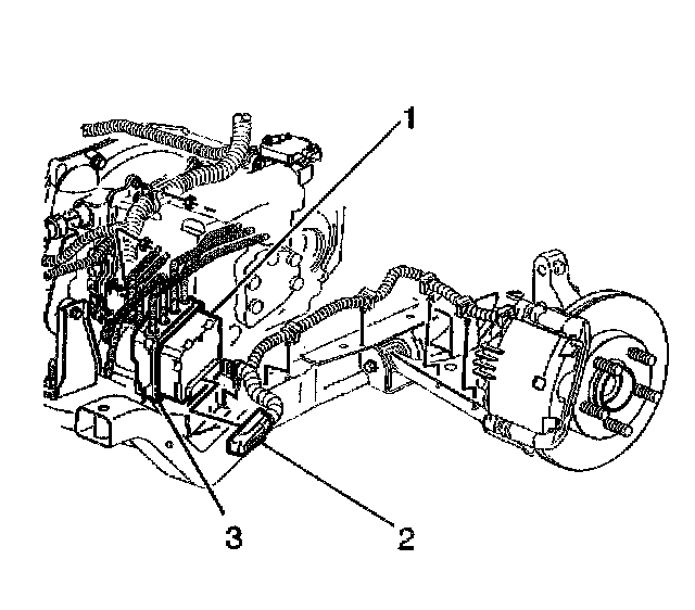 5. Disconnect the EBCM harness connector (2) from the EBCM (1).