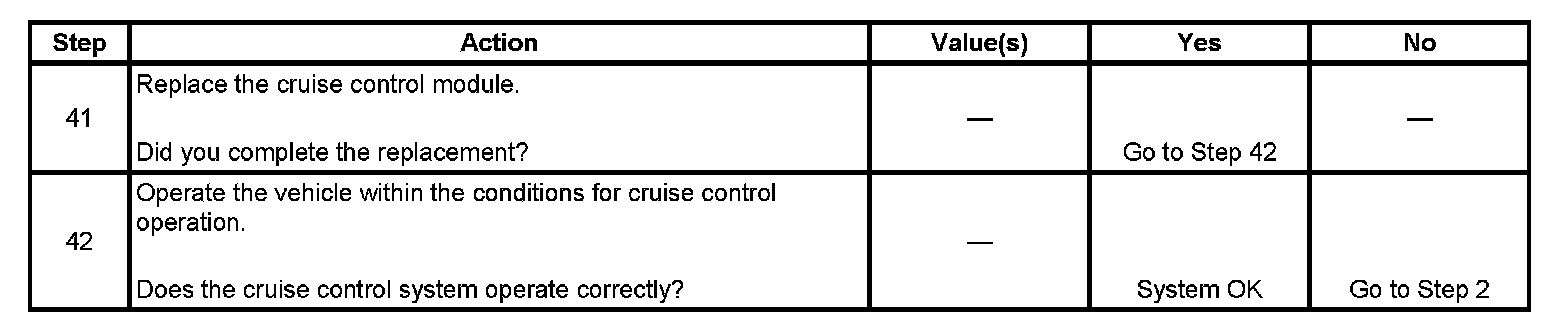 CRUISE CONTROL INOPERATIVE/MALFUNCTIONINGDIAGNOSTIC AIDS