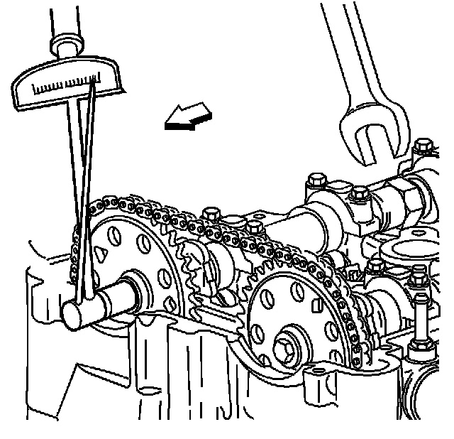 13. Use a 24 mm wrench to hold the camshafts from turning.
