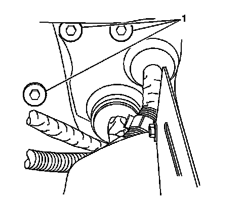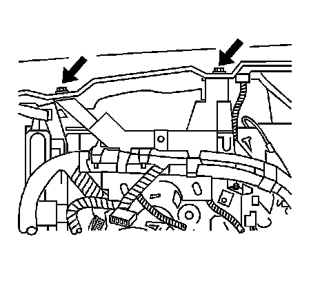 19. Loosen the steering column brace bolts (1) behind the under hood electrical center.