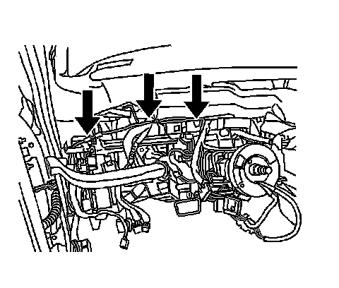 31. Remove the wiring harness clips (3) from the HVAC module assembly bracket.