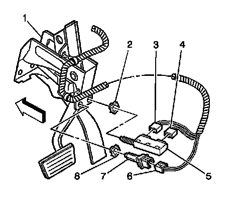 2. Disconnect the electrical connections (3, 4) from the stop lamp switch (5).