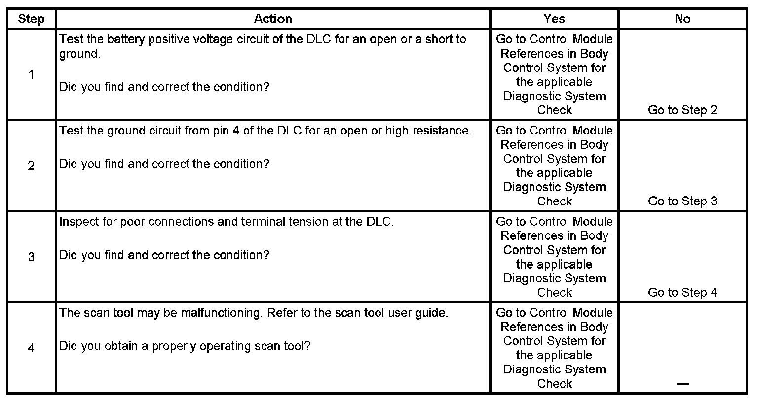 4. If the battery positive voltage and ground circuits of the DLC are functioning properly. The malfunction must be due to the scan tool.