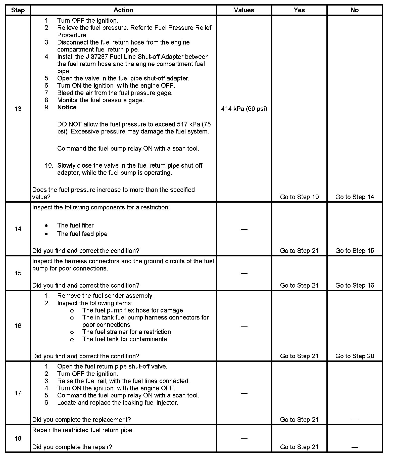 The control module enables the fuel pump relay when the ignition switch is turned ON. The control module will disable the fuel pump relay within two seconds unless the control module detects ignition reference pulses. The control module continues to enable the fuel pump relay as long as ignition reference pulses are detected. The control module disables the fuel pump relay within two seconds if ignition reference pulses cease to be detected and the ignition remains ON.