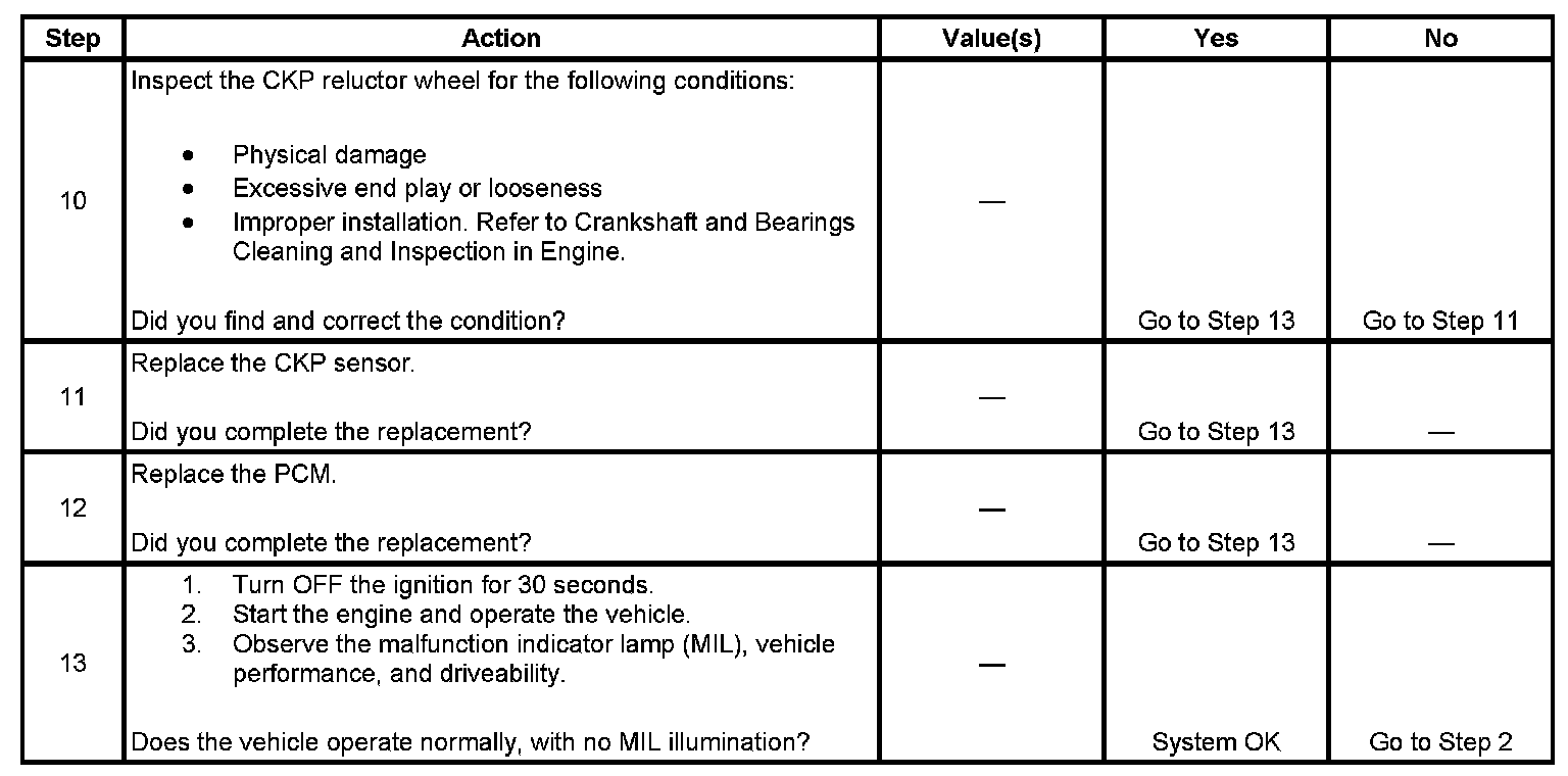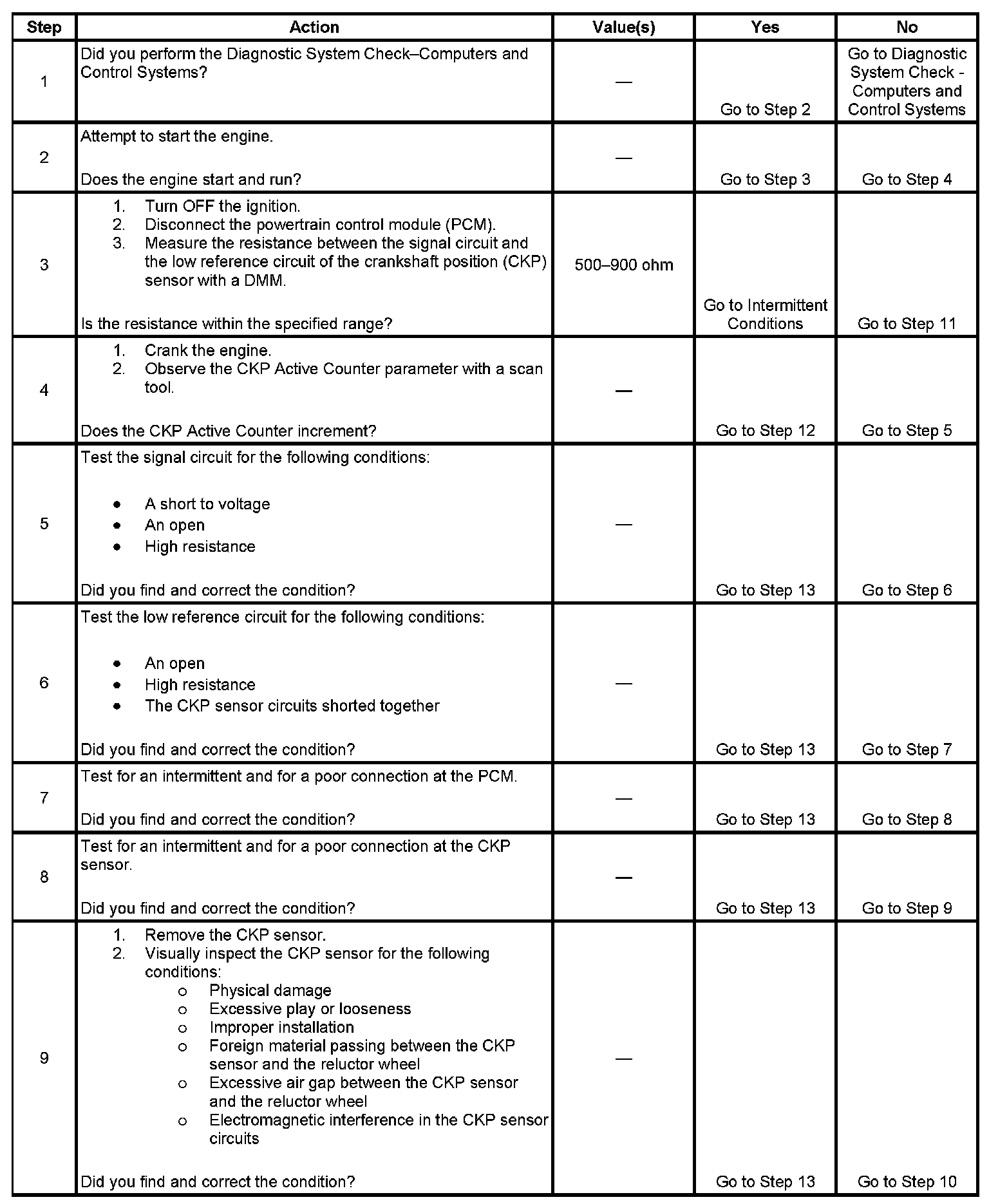 The crankshaft position (CKP) sensor is a variable reluctance sensor. The crankshaft position (CKP) sensor indicates the crankshaft speed and position. The CKP sensor produces an AC voltage of different amplitude and frequency. The frequency depends on the velocity of the crankshaft. The AC voltage output depends on the crankshaft position and battery voltage. The CKP sensor works in conjunction with a 7X reluctor wheel attached to the crankshaft. The CKP sensor connects to the powertrain control module (PCM) through the following circuits: