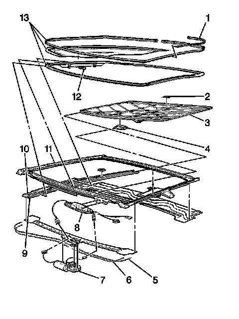 1. Install the sunroof control module to the sunroof assembly by sliding the control module (8) towards the left side of the vehicle.