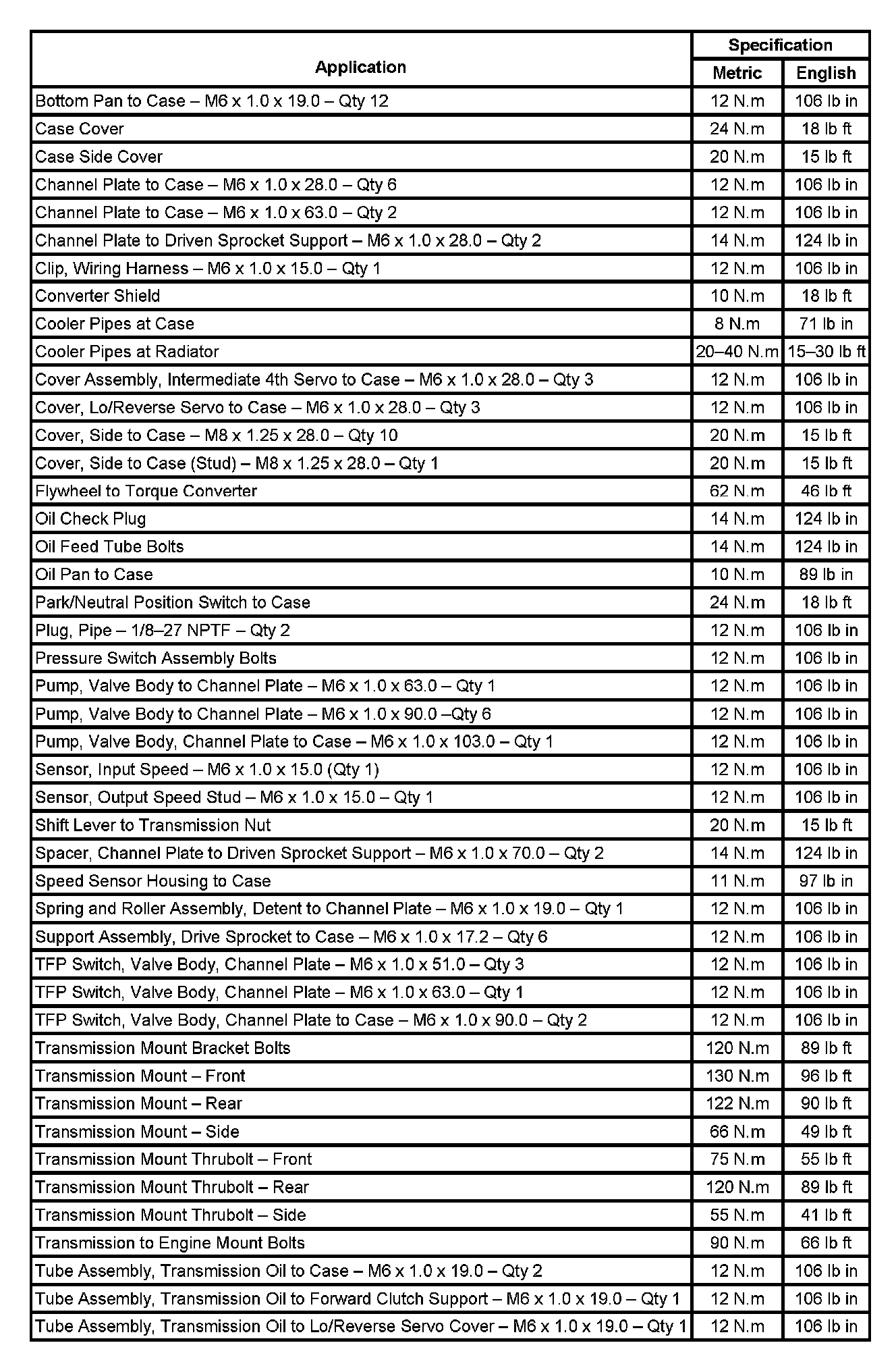 Fastener Tightening Specifications