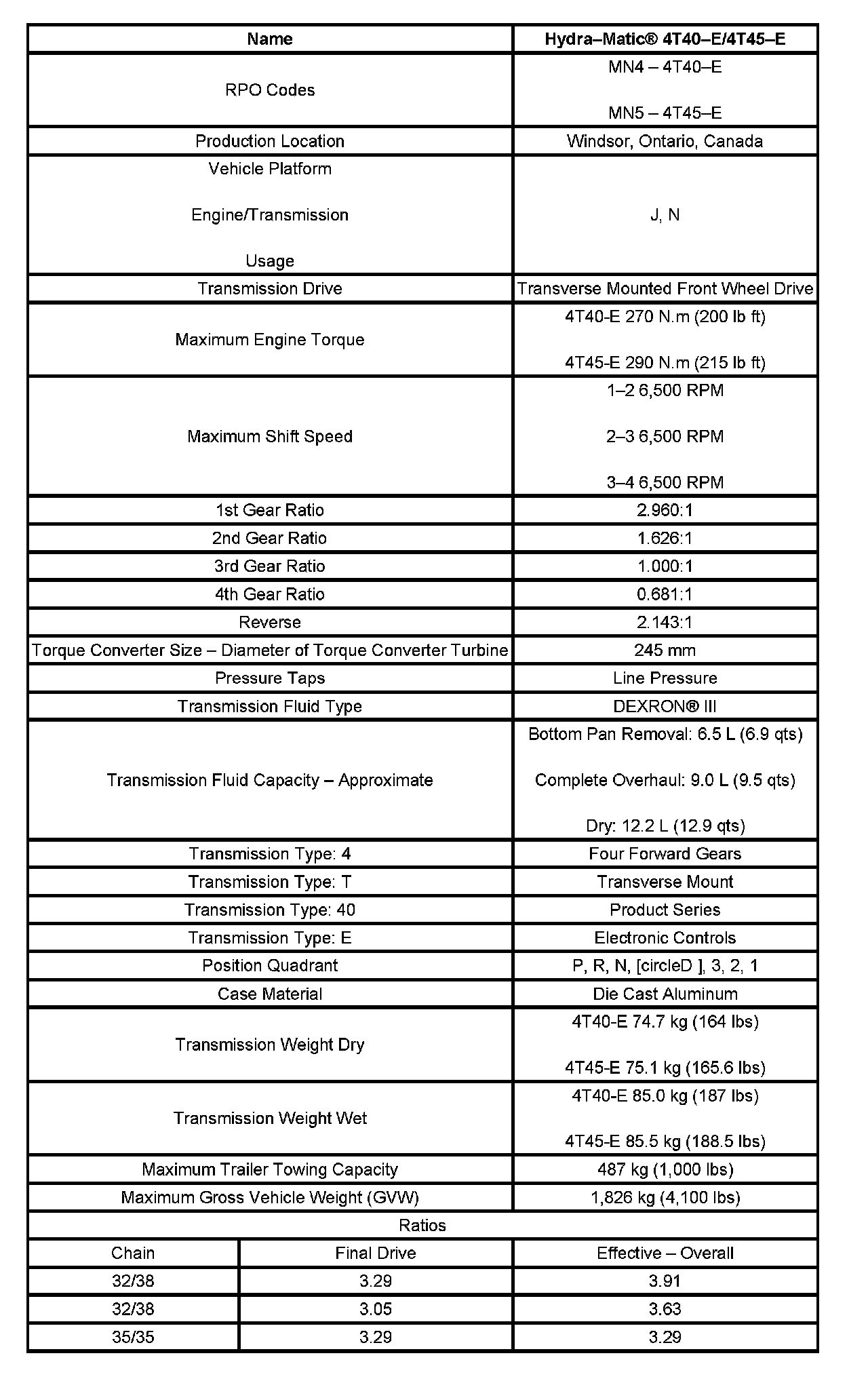 Transmission General Specifications