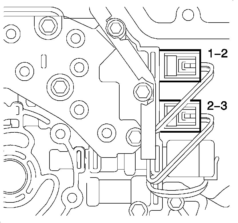 Important: The 1-2 shift solenoid wires are red and green. The 2-3 shift solenoid wires are red and yellow.