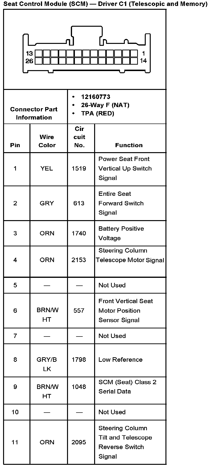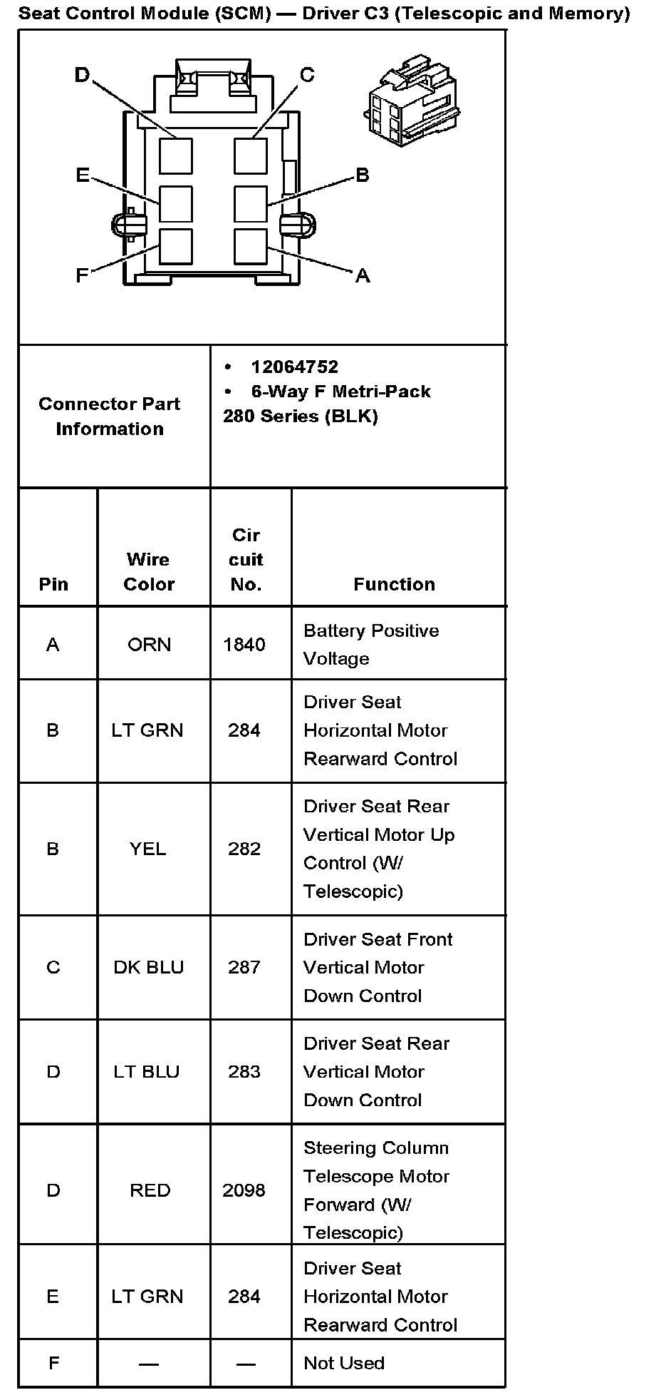 Seat Control Module (SCM)-Driver C1 (Telescopic And Memory) Part 2: