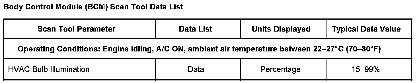 SCAN TOOL DATA LISTBody Control Modules (BCM) Scan Tool Data List: