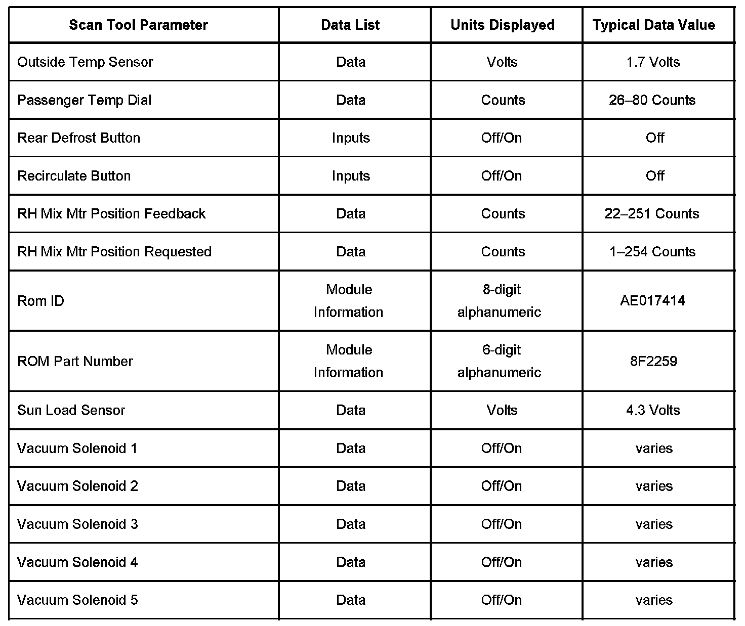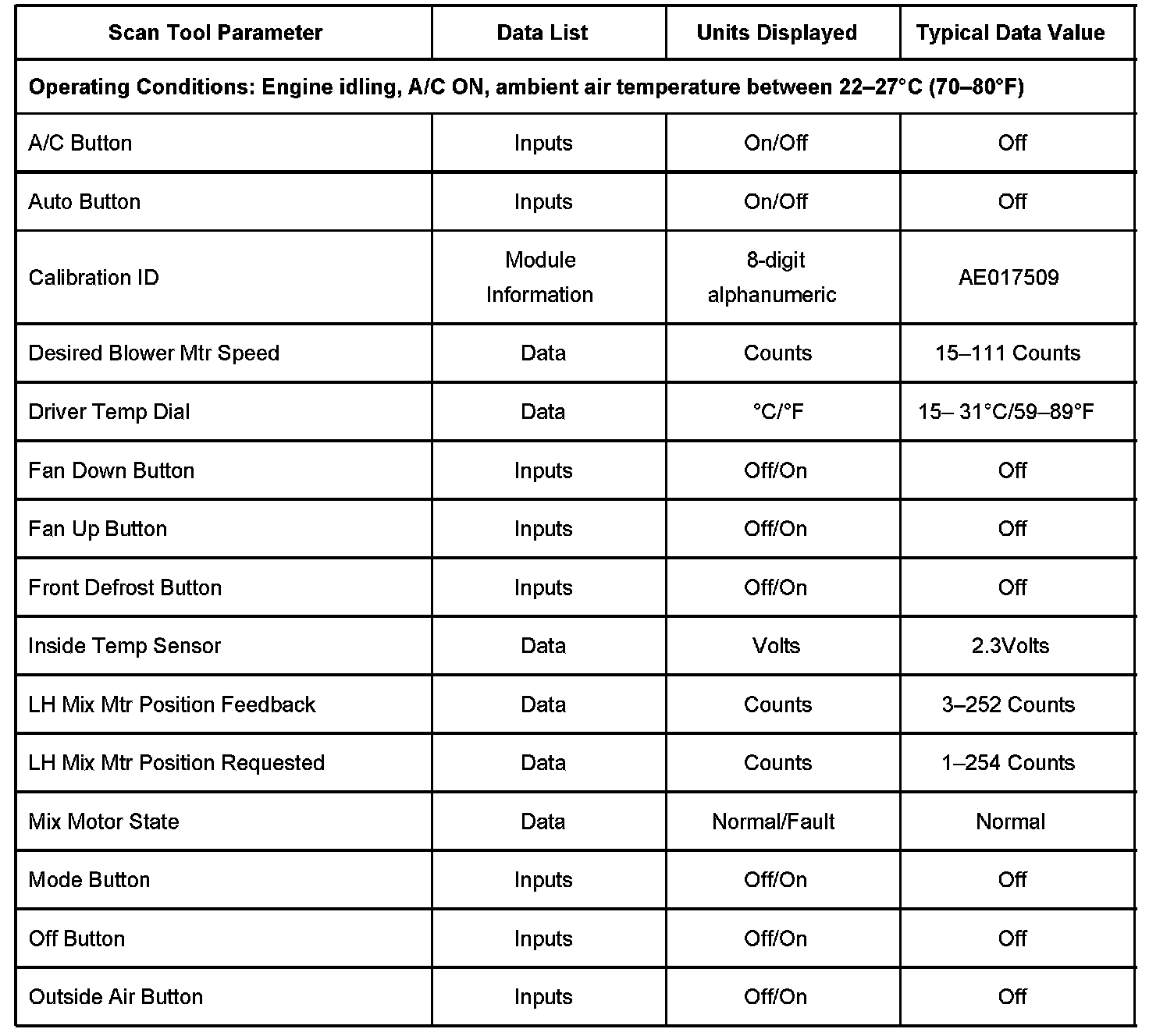Heating And Air Conditioning Scan Tool Data List Part 1: