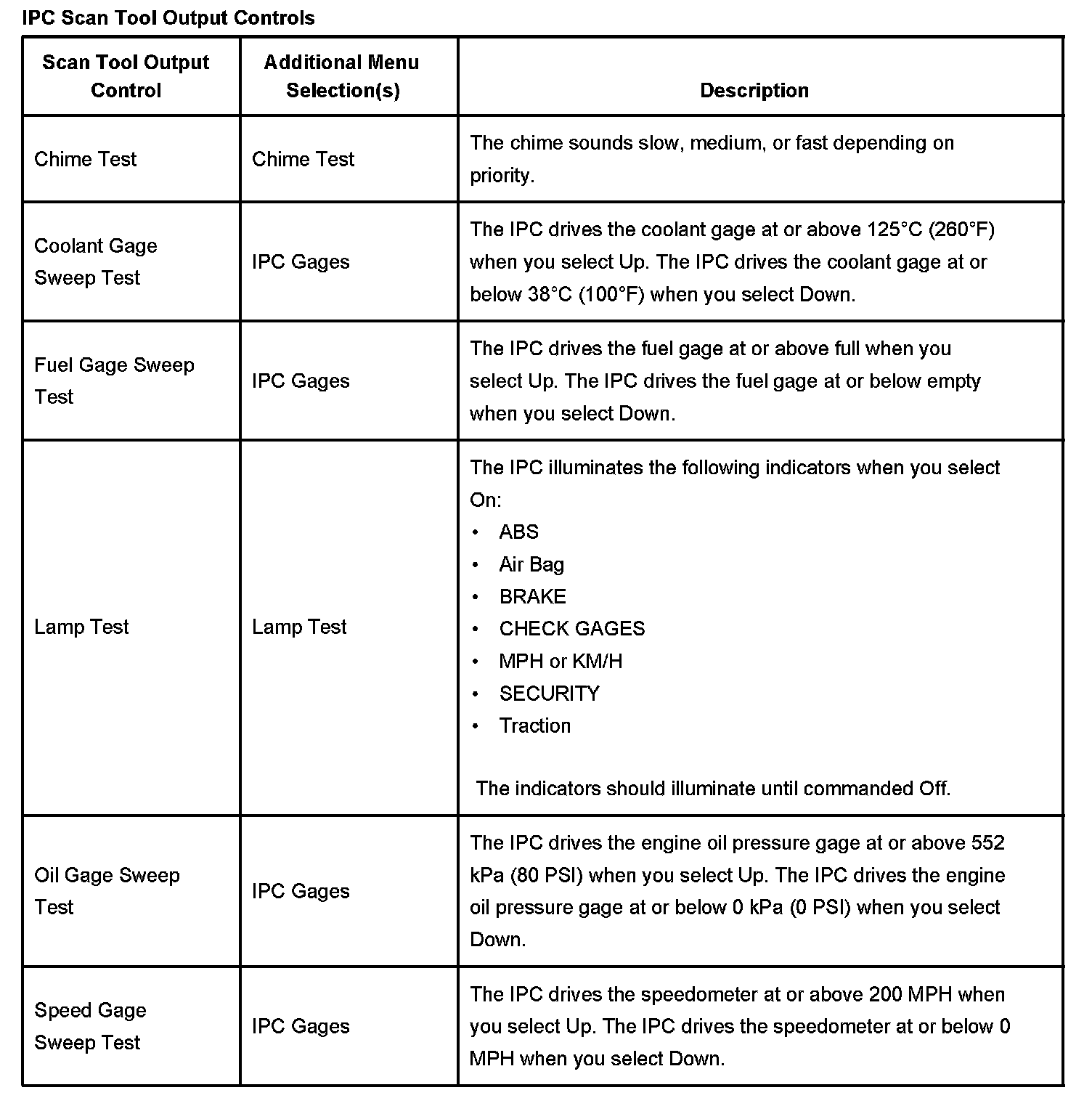 PCM Scan Tool Output Controls: