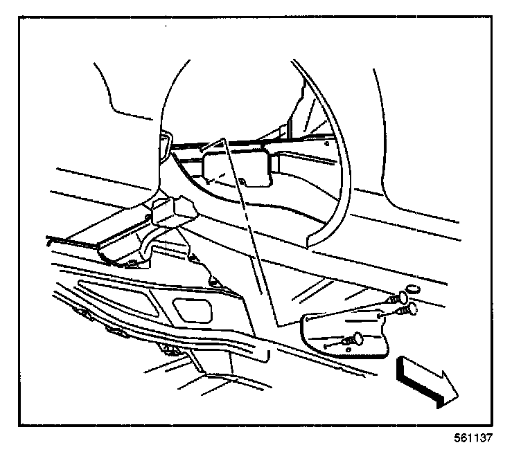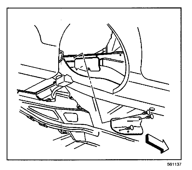 1. Remove the right rear wheelhouse panel.