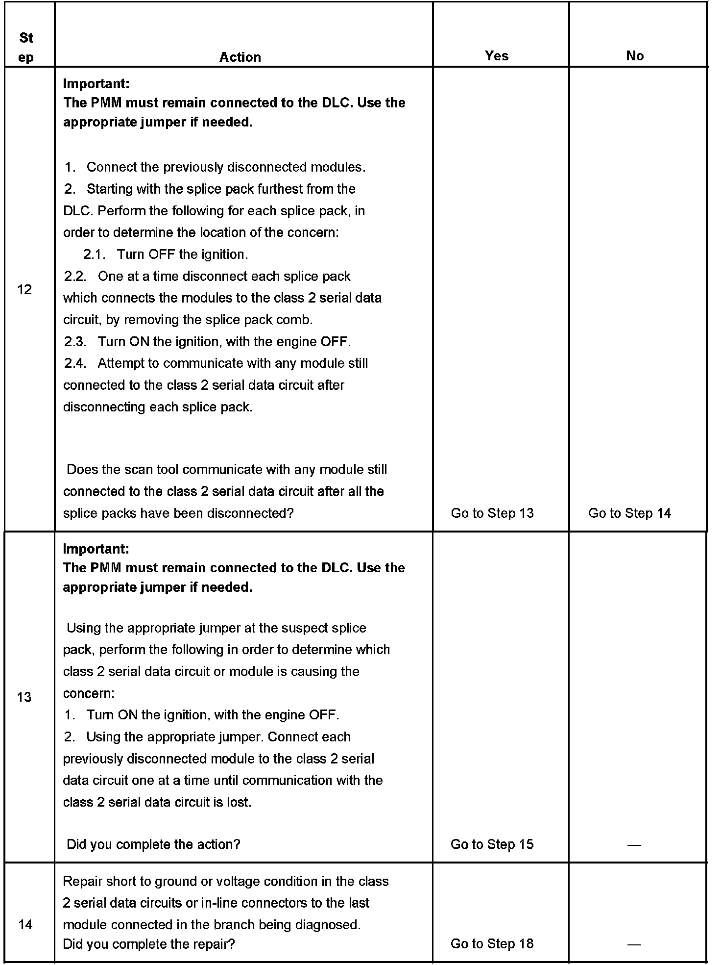 12. Normal class 2 serial data communication cannot take place until the power mode master (PMM) module sends the appropriate power mode message. If the PMM does not send a wake-up message, other modules on the class 2 serial data circuit may not communicate.