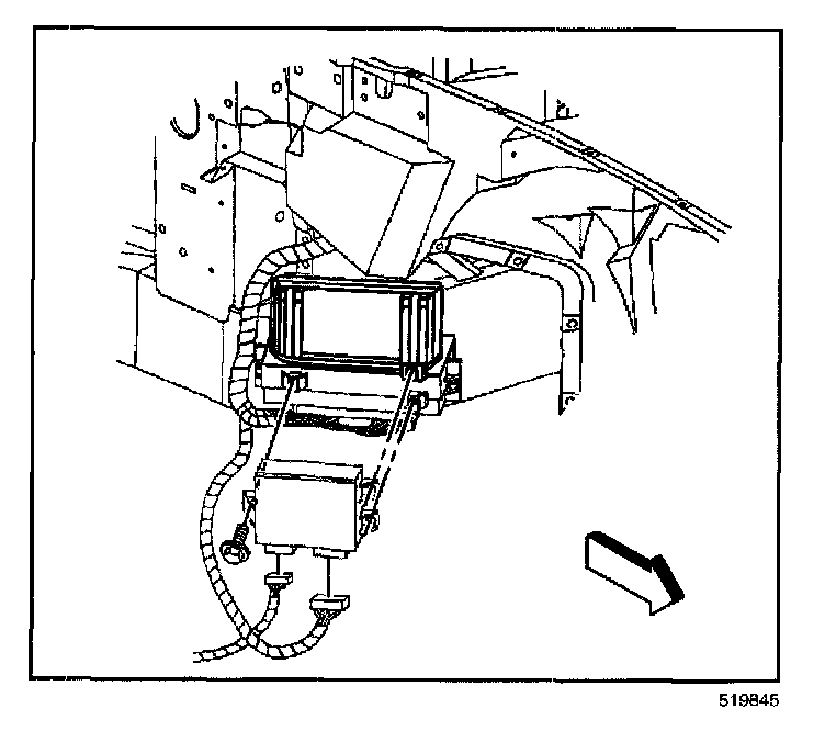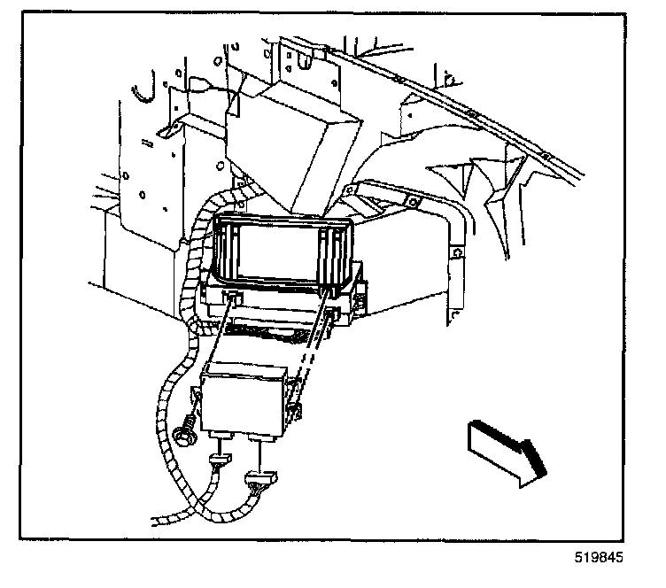 2. Align the hole in the rear mounting tab of the TAC module to the corresponding hole in the PCM mounting bracket. Position the TAC module below the rear mounting tab for greater clearance in order to install the rear retaining fastener.