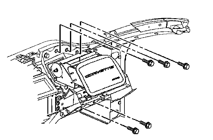 6. Install the bolts which secure the SIR bracket to the I/P upper and lower support beams.
