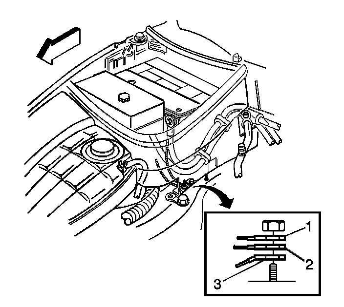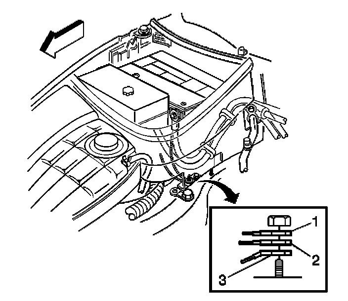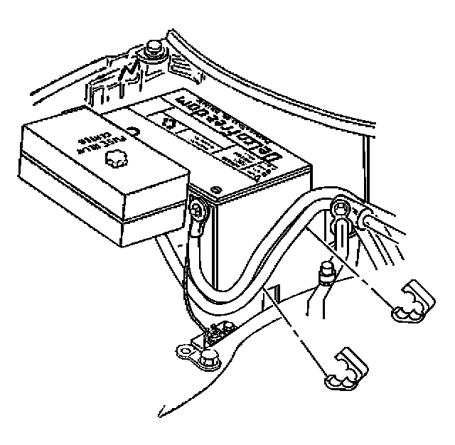 8. Remove the negative battery cable ground lead (1).