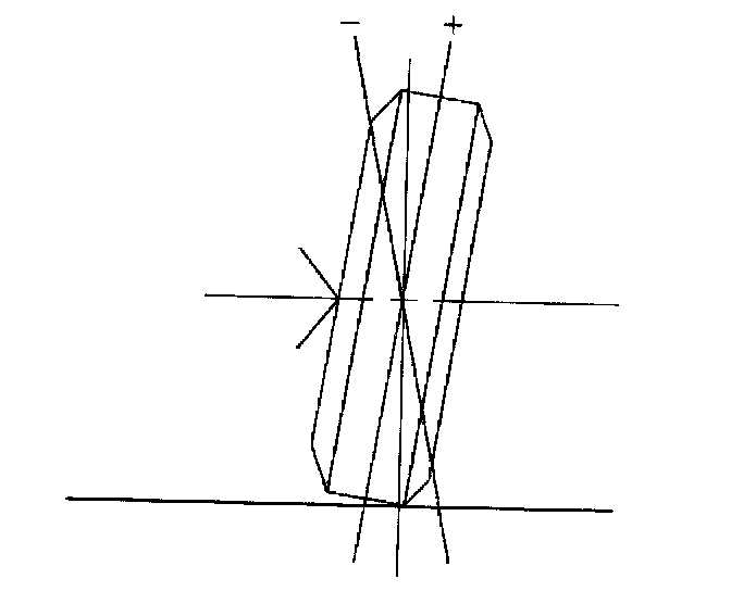 Camber is the tilting of the wheels from the vertical when viewed from the front of the vehicle. When the wheels tilt outward at the top, the camber is positive (+). When the wheel tilts inward at the top, the camber is negative (-). The amount of tilt is measured in degrees from the vertical. Camber settings influence the directional control and the tire wear.
