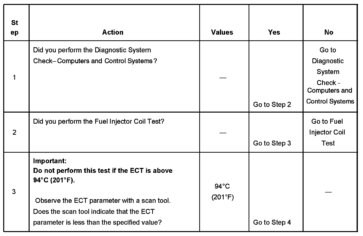3. The engine coolant temperature (ECT) must be below the operating temperature in order to avoid irregular fuel pressure readings due to hot soak fuel boiling.