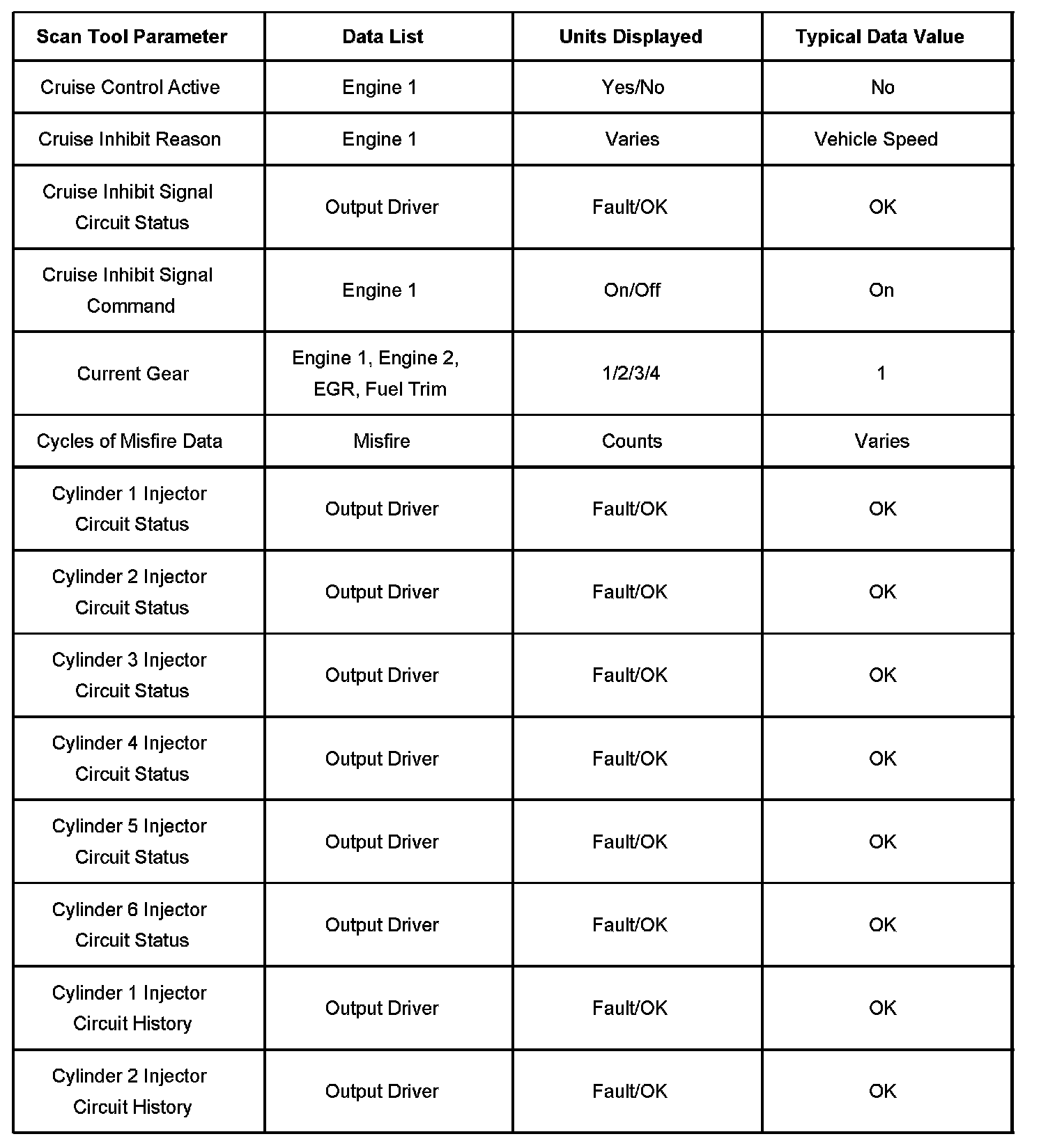Use the Typical Scan Data Values table only after the Diagnostic System Check-Computers and Control Systems has been completed, no DTCs were noted and you have determined the on-board diagnostics are functioning properly. Scan tool values from a properly running engine may be used for comparison with the engine you are diagnosing. The Typical Scan Data values represent values that would be seen on a normally running engine.