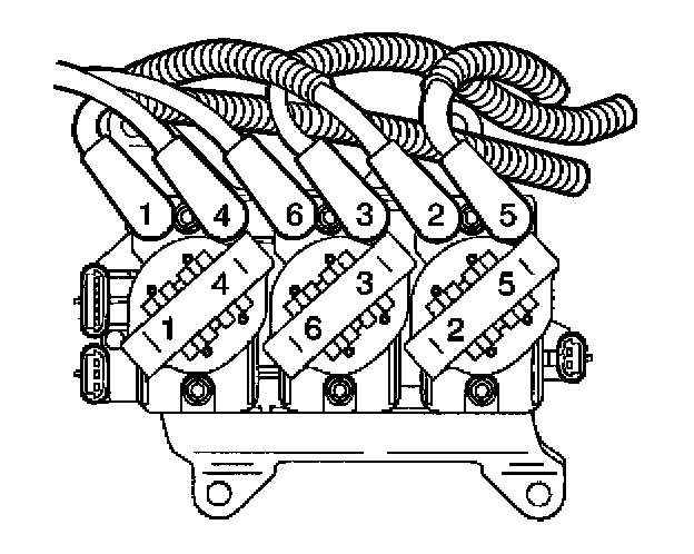 5. Install the spark plug wires 2, 4, and 6 to the engine left side spark plugs.