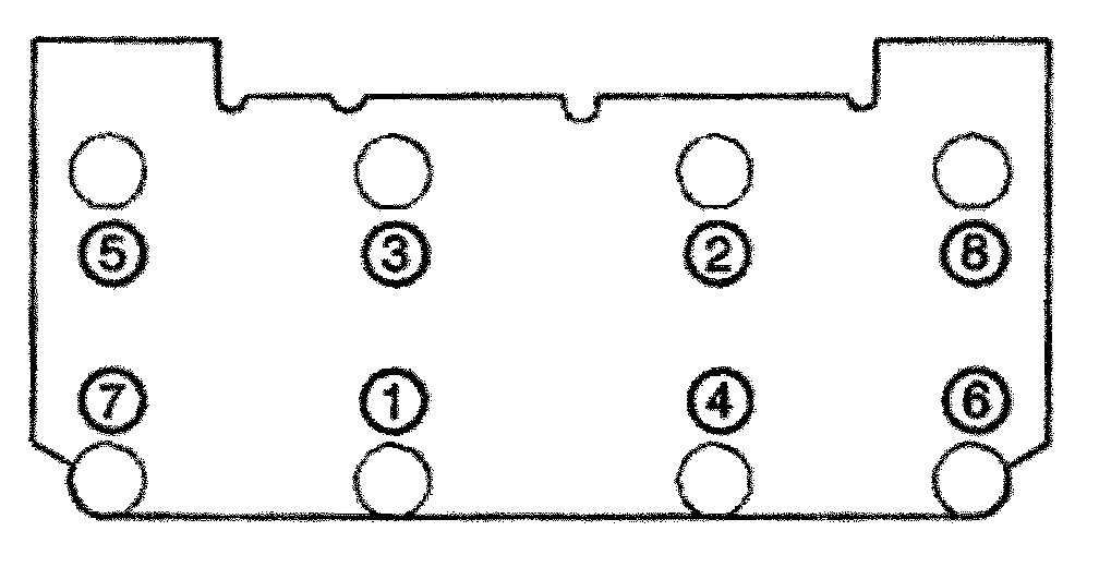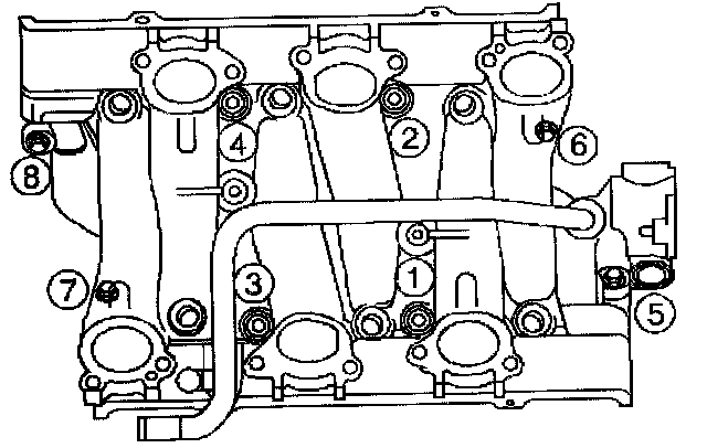 Tighten the lower intake manifold bolts (5, 6, 7, 8) in sequence 25 Nm (18 ft. lbs.) on the final pass.