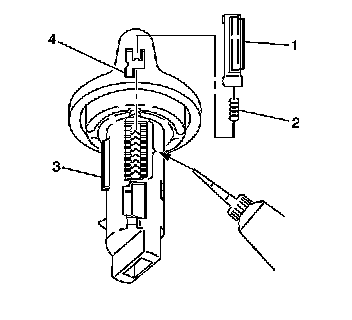 1. Remove the ignition lock cylinder core from the ignition lock cylinder housing.