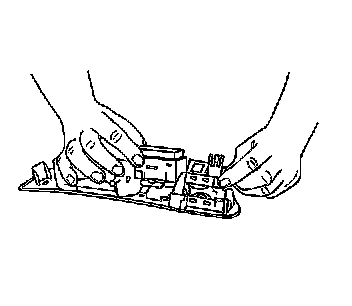 1. Install the front door power window control switch to the front door pull cup pressing into place until fully seated.