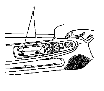 1. Remove the front door pull cup screws (1) and pull cup from the front door trim panel. Armrest Pull Cup Replacement (Impala) Armrest Pull Cup Replacement (Monte Carlo).